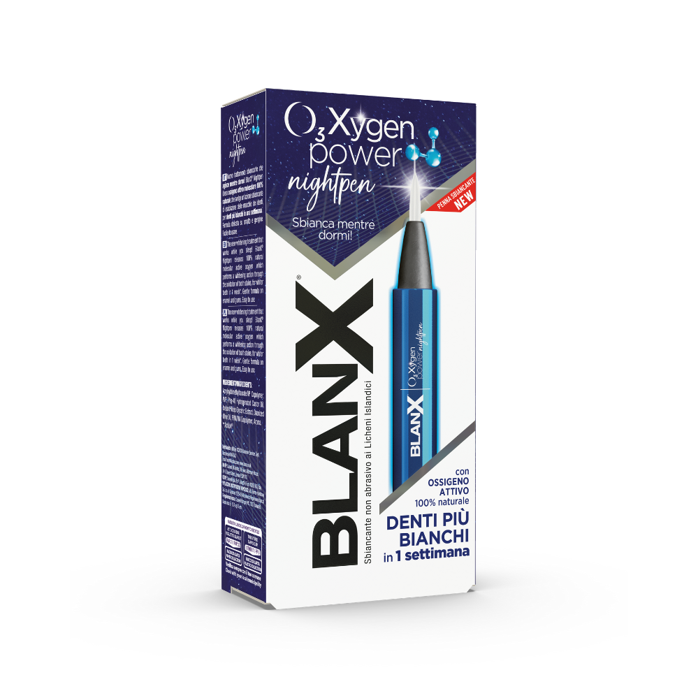 Blanx® NightPen O3Xygen Power è il trattamento sbiancante esclusivo Blanx® con ossigeno attivo per denti più bianchi in 1 settimana!*