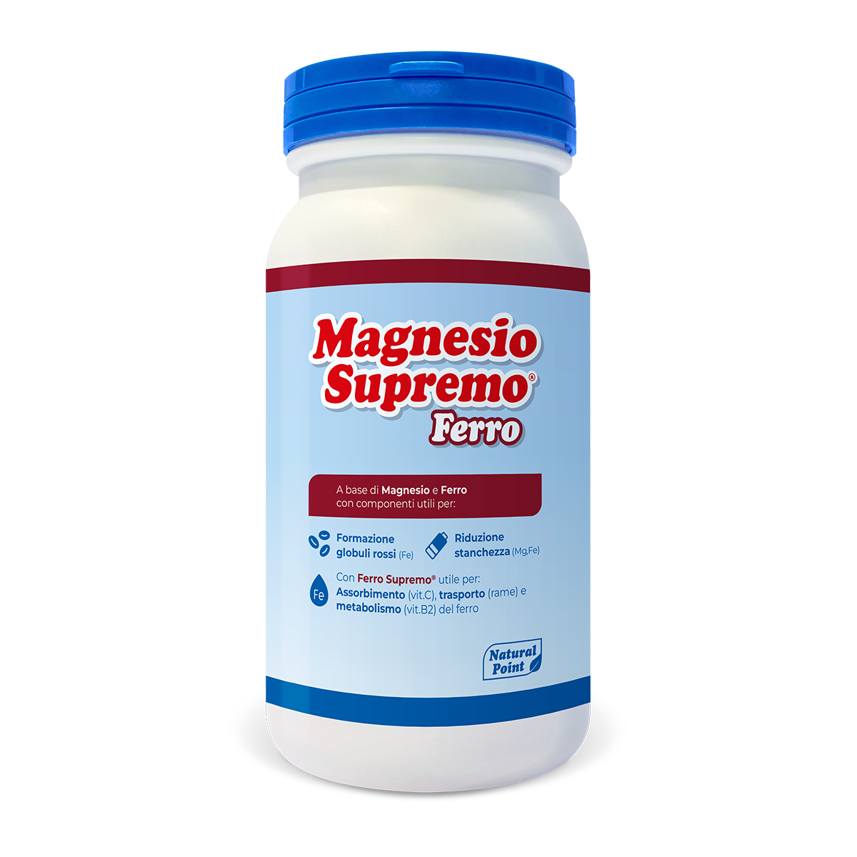 È un integratore alimentare che associa i benefici di Magnesio Supremo® con Ferro Supremo® (ingrediente a base di ferro liposomiale, vitamina C, rame, vitamina B2), acido folico e succo di barbabietola.